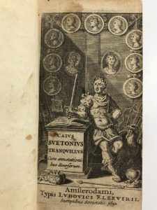 [ELZÉVIER] [SUÉTONE] - Caius Suetonius tranquillus. 1 vol. in-24 relié plein veau époque, dos lisse à caissons fleuris, tranches rouges. Amsterdam Ludovic Elzevier 1650.