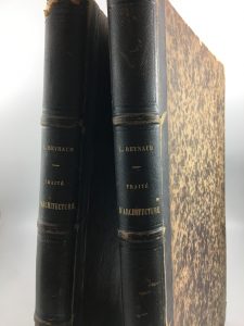 REYNAUD (Léonce) - Traité d'architecture. Avec environ 106 dessins n. & bl. et 17 dessins en couleurs. 2 vol. de planches in-4 reliés ½ basane. Paris Carillan-Gœury, Dalmont 1850-1858.