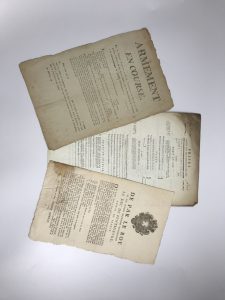 DOCUMENTS IMPRIMÉS – Congé – vente de bâtiment – armement en course – prises – rôle d'équipage. 5 documents.