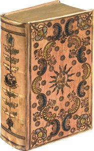Intéressant et plaisant spécimen de reliure allemande dite « Bauern-Einband » (reliure de paysan). ¶ Elle recouvre une édition de Sulzbach du fameux livre de prières de Martin von Cochem, imprimée en gothique et ornée de quelques figures en taille-douce. ¶ Exemplaire en très belle condition, malgré son dos légèrement déteinté.