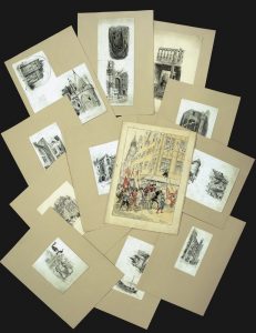 ♦ Il est en outre enrichi de 19 DESSINS ORIGINAUX À LA PLUME ET AU CRAYON, de petit et moyen format, et d'UNE AUTRE AQUARELLE ORIGINALE, composition légèrement réduite de celle de la p. 160, le tout conservé dans une chemise demimaroquin incorporée à l'étui. Tous les dessins sont reproduits dans l'ouvrage.