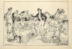 Soirée chez le sous-préfet (p. 28) et de 2 CROQUIS ORIGINAUX À LA PLUME, dont celui préparatoire pour la planche p. 44.