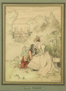 MORIN (Louis). Dessin original au crayon, à la plume et à l’aquarelle, signée en bas à droite. Environ 265 x 195 mm (à vue). Encadré.