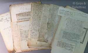 [AUTOGRAPHES] - Ensemble de lettres ou pièces autographes de : • Drouot de Charlieu, • Antonio Luchesi-Palli, • Jean Gustave Lebaudy (industrie sucrière), • le commissaire de police marseillais Permon,