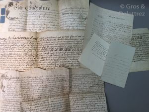 ANGLETERRE]. Trois actes manuscrits rédigés sur parchemin et datés des 5 juin 1690 et 23 juin 1702, une lettre d’Henry Petty-Fitzmaurice, 5e Marquis de Lansdowne.