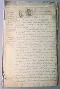 [MEUSE]. - Acte de revendication du 18 messidor de l’an II, de la terre de Sorcy et Saint-Martin auprès de Jean Isaac de Thelusson (1764-1828), dernier Seigneur et Comte de Sorcy, propriétaire de la dite terre.