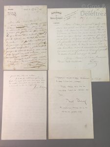 [POLITIQUE]. Ensemble de lettres autographes signées par • Paul DESCHANEL (1855-1922), • Etienne ARAGO (1802-1892), • Jules SIMON (1814 - 1896), • François GUIZOT (1787 - 1874).