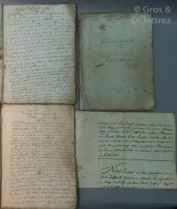CAHIERS MANUSCRITS SUR LE DROIT? CODES ET PROCÉDURES CIVILES. Le manuscrit est formé de trois cahiers au format des cahiers d’écoliers, d’une centaine de pages chacun, d’une écriture très lisible, daté de 1821 et d’une origine toulousaine.