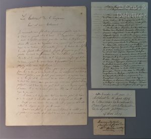 • «Morceau du voile placé sur la dépouille de Madame Mère morte», Laetitia Buonaparte, lors de son transfert à la Chapelle impériale en 1860, sur l’ordre de Napoléon III, son petit• fils.