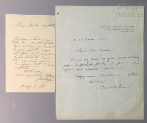 Paul COLIN (Nancy 1892-1985) Peintre et affichiste. Lettre autographe signée, à l’en-tête de l’Ecole Paul Colin, adressée le 15 février 1932 à une dame «Demandez-moi ce que vous voudrez pour ce Noël du peintre». 1 page in-4.