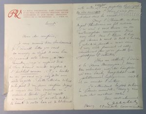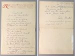 La lettre, de deux pages, à l’en-tête de la Revue Verlainienne, est accompagnée d’un poème manuscrit, signé, intitulé «Complainte pour ma soeur déchue».