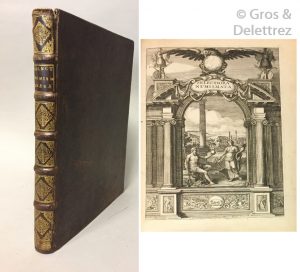 Jean VAILLANT. Selectiora numismata in Aere maximi moduli e museo illustrissimi D.D. Francisci de Camps, concisis interpretationibus per D. Vaillant. Illustrata. Paris, Dezallier, 1694, In-4 relié plein veau brun, dos à nerfs orné avec pièce...