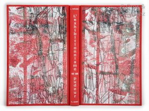 [ADAMI] - Jean FREMON . L’Exhibitionnisme et sa Pudeur. Paris, Fata Morgana, 1980, in-8 relié plein box rouge aux plats décorés de papier peint, couverture conservée, dos lisse, étui. Reliure d’Anne Giordan.