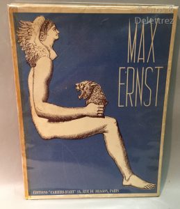 [ERNST]. Max Ernst. Œuvres de 1919 à 1936. Paris, Cahiers d’Art, 1937 , In-4 broché, couverture illustrée, dos en partie manquant, 119 pages de textes d’Aragon, Breton, de Bosschere, Desnos, Eluard, Peret, Tzara, illustrées de 125...