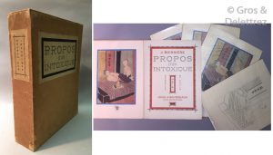 [FOUJITA] - BOISSIÈRE Jules. Propos d’un intoxiqué. Paris, Javal et Bourdeaux, 1929, In-4 en feuilles sous couverture verte rempliée, imprimée et illustrée, présenté sous emboitage saumon fané.
