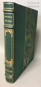 [FREIDA] - - Anatole FRANCE. Thaïs. Paris, Plicque, 1924, In-4 relié demi-maroquin à coins signé de Mériot, dos à quatre nerfs sautés et mosaïqués, tête dorée, couverture illustrée et dos conservés.