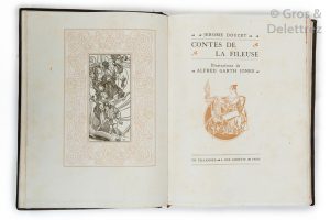 GARTH JONES] - Jérome DOUCET. Contes de la Fileuse. Paris, Tallandier, 1900, In-4 relié plein veau glacé à la bradel signé de Bue Drevet, couverture et dos conservés, tête dorée.