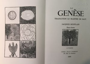 [HOUPLAIN]. La Genèse. Traduction du Maistre de Sacy. Paris, Porson, 1949, In-4 en feuilles sous couvertures illustrées rempliées et emboîtage illustré.