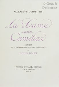 [ICART] - - Alexandre DUMAS Fils. La Dame aux Camélias. Paris, Guillot, 1938, In-4 en feuilles sous couverture rempliée et étui à fleurs de l’éditeur.
