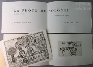 [KROL et JOBERT] - Eugène IONESCO. Photos du Colonel. Les Impénitents, 1964, In-8 oblong sous emboîtage, illustré d’un frontispice d’Abram KROL, de 16 burins et 2 bois originaux d’Yves JOBERT.
