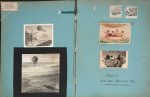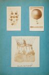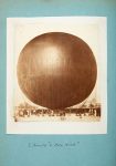 • Pages d'album détachées sur Le Géant de 1863 : photo originale de la nacelle exposée à Londres, le Géant gonflé en intérieur à Londres, deux photos (carte de visite) par Nadar dont celle célèbre représentant Gaston Tissandier dans la nacelle, photo du départ du Géant au Champ-de-Mars en oct. 1863, fragment d'étoffe du Géant, gravures de presse représentant la catastrophe du Géant /