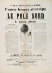 lettre du Ministère de la Guerre mettant à disposition 200 hommes d'infanterie et 50 artilleurs afin de sécuriser l'espace du gonflement de l'aérostat, articles, affiche (46 x 63 cm) annonçant au Champ-de-Mars la première ascension du Pôle Nord le 27 juin, au profit de l'Expédition de Gustave Lambert, 3 photos de cet événement,
