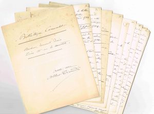 Albert TISSANDIER - Manuscrit AS, 20 p grand in-8 en feuilles, oct. 1882 : « Bibliothèque Carnavalet - Brochures, documents divers, livres etc. sur les aérostats » /