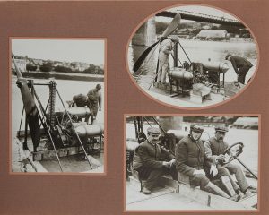 MONTAGNE & AEROGLISSEURS - Gros album (37 feuilles in-fol à l'italienne), présentation soignée, avec 98 photos (tous formats) de montagne (scènes de ski, bivouac, refuge, paysages neigeux, portraits etc.) et 15 photos d'essais d'aéroglisseurs...