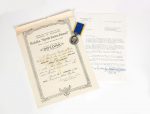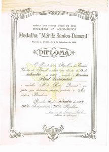 DÉCORATION - « Mérito Santos-Dumont » - Distinction brésilienne créée en 1956 - Diplôme et médaille décernés à Paul Tissandier à titre posthume - Le diplôme décerné en 1967, est signé par le Ministre de l'Air brésilien.
