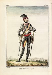 Seconde et meilleure édition de ce fameux traité militaire, la première donnée par l'abbé Pérau, faite d'après le manuscrit original de 1740. Zacharie Pazzi de Bonneville en avait publié une première édition à La Haye en 1756, posthume elle aussi, que l'on regarde généralement comme moins aboutie que celle-ci – eu égard notamment à l'illustration. ¶ La présente édition est ornée de 84 belles planches hors texte (dont 37 dépliantes) dessinées par Pierre Patte d'après l'auteur et gravées sur cuivre par Moitte, Tardieu et Patte lui-même, représentant des des costumes militaires et des plans de bataille. ¶ Composé en treize nuits sous l'emprise de la fièvre, l'ouvrage du héros de Fontenoy théorise le recrutement, l'entretien et la formation des troupes, puis l'association de l'infanterie et de la cavalerie, la fortification et le retranchement, et enfin les qualités nécessaires aux généraux. Sa hauteur de vue fera dire à Frédéric le Grand : Je me suis instruit par ses discours, non pas dans la langue française mais dans l'art de la guerre. Ce maréchal pourrait être professeur de tous les généraux de l'Europe. ¶ Outre l'Histoire abrégée de Maurice de Saxe, l'ouvrage renferme les Réflexions sur la propagation de l'espèce humaine de l'auteur. En effet, « après avoir traité d'un art qui nous instruit avec méthode à la destruction du genre humain, [il va] tacher de faire connaitre les moyens auxquels on pourrait avoir recours pour en faciliter la propagation », en proposant, entre autres idées curieuses, d'instituer un mariage par bail de cinq ans renouvelables trois fois et de pensionner les mères qui présenteraient plus de dix enfants en vie. ¶ Élégant exemplaire en veau blond dans lequel toutes les planches ont été finement coloriées à l'époque. ¶ Habiles restaurations à la reliure. ¶ Pohler, III, 590 – Colson, 163-164 – Cohen, 942.