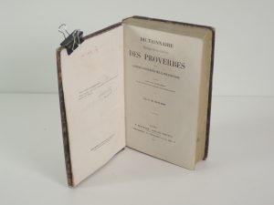 DICTIONNAIRE étymologique, historique et anecdotique des PROVERBES, par M.QUITTARD, PARIS 1842. in-8°, demi bas, coiffe abimée et petits manques de peau.