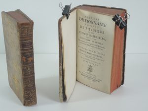 NOUVEAU DICTIONNNAIRE raisonné de PHYSIQUE et des SCIENCES NATURELLES, contenant l'histoire générale des animaux, des végétaux... AMSTERDAM, MARC-MICHEL REY 1770, ED OR. In-8°, 588p, 496p. 2 vol plein veau, tranches rouges dos orné, reliure...