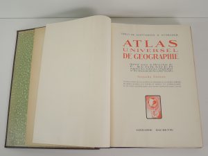 VIVIEN DE SAINT MARTIN & SCHRADER, ATLAS UNIVERSEL DE GEOGAPHIE, Librairie HACHETTE sd. 80 cartes lithographiées + un index, montés dans une reliure à vis. In-folio, pleine toile chagrinée avec décor gaufré et doré.