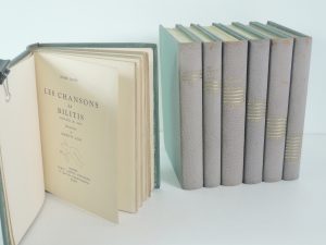 PIERRE LOUYS, LES CHANSONS DE BILITIS, APHRODITE, LA FEMME ET LE PANTIN, LES AVENTURES DU ROI PAUSOLE, SANGUINES, ARCHIPEL, PSYCHÉ. PARIS, union latine d'édition 1931-1934. Illustrations de MARIETTE LYDIS. 7 vol en pleine peau maroquinée, tête...