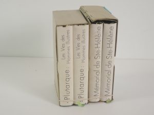 PLÉIADE : PLUTARQUE, LA VIE DES HOMMES ILLUSTRÉS, 2 tomes 1951. LAS CAS, MÉMORIAL DE STE-HÉLÈNE, 2 tomes 1948. Jaquette, étui.