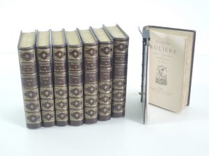 ŒUVRES DE MOLIÈRE, ALPHONSE LEMERRE 1872-1874. 8 vol, in 12 demi bas tête or, titre en deux pièces, dos orné, double filet or sur mors. Bon état.