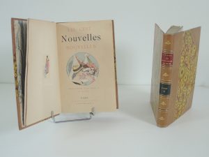 A. ROBIDA, LES CENT NOUVELLES NOUVELLES, PARIS, LIBRAIRIE ILLUSTRÉE 1888. 2 vol In-8° (22x14), vii, 335 p, 308 p. Plus de 300 dessins de ROBIDA. Couv conservée.