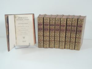 ANNALES POLITIQUES, CIVILES ET LITTÉRAIRES DU 18e siècle par M. LINGUET, LONDRES 1777-1880. 9 tomes, In-8° 2 x14 52 6p, 530p, 545p, 512 p, 520p, 564p, 538 p, 512p, 448p.