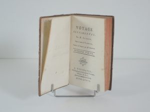 VOYAGE SENTIMENTAL par M. STERNE sous le nom d' YORICK, traduit de l'anglais par FRESNAIS, NEUCHATEL 1776. In-12, (16x9), deux parties en un vol, viij, 207 p, 205 p. Demi bas à coins, tranche rouge, titre sur pièce, dos fileté. Usures du temps.