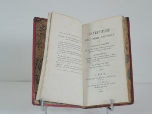 RARE. CATHÉCHISME D'ÉCONOMIE POLITIQUE par JEAN BAPTISTE SAY, PARIS chez BOSSANGE 1821. ► RARE SECONDE ÉDITION. In-12, (17,5x10), demi veau à coins, tranche marbrée, titre or, dos orné noir et or. Menus défauts.
