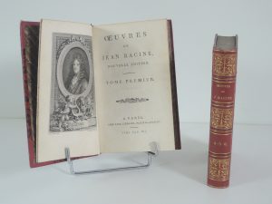 ŒUVRES DE JEAN RACINE, nouvelle édition, à PARIS chez GIDE 1797. 6 tomes reliés en deux vols. 1er vol, tomes 1,2,3, LA THÉBAÏDE OU LES FRÈRES ENNEMIS, ALEXANDRÉ, 152 p, ANDROMAQUE, LES PLAIDEURS, 171 p,
