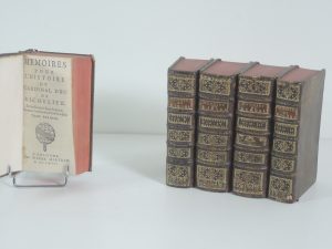 MÉMOIRES POUR L'HISTOIRE DU CARDINAL DUC DE RICHELIEU recueillis par le sieur AUBERY à COLOGNE chez PIERRE MARTINEAU 1667. 4 vol, In-12, (13,5x7) 624 p, 528 p, 790 p, 773 p, 595 p, table, liste des pièces pour chaque tome.