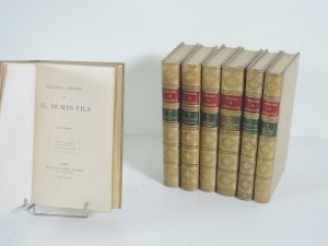 ALEXANDRÉ DUMAS FILS, THÉATRE COMPLET, PARIS, MICHEL LEVY, 1868-1892. ÉDITION DITE ÉDITION DES AMIS NON MIS DANS LE COMMERCE, IMPRIMÉE A PETIT NOMBRE (67), 15 SUR CHINE, 52 SUR HOLLANDE, LE NOTRE PORTE LE N°28. 7 vol In-8° 423 p, 384 p,...