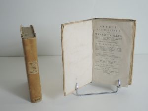 ABRÉGÉ DE L'HISTOIRE DES PLANTES USUELLES, par PIERRE JEAN BAPTISTE CHOMEL à PARIS et BAUVEAIS 1803. In-8° 2 vol à la reliure usée recouverte de bandes de papier, titre au dos.