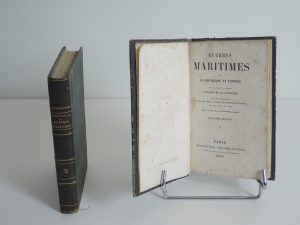 GUERRES MARITIMES SOUS LA REPUBLIQUE ET L'EMPIRE par le capitaine de vaisseau JURIEN DE LA GRAVIERE, PARIS, CHARPENTIER 1853. 2 vol In-12, bien complet des plans des batailles navales et des cartes.