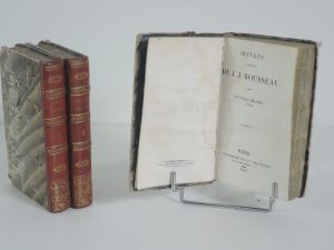 J.J. ROUSSEAU, NOUVELLE HELOISE, PARIS, J. LEFEBVRE ET Cie 1829. 3 vol, In-12, 403 p, 412 p, 418 p. Demi-veau, titre et tomaison, dos orné Romantique. Accroc au bas du tome 1, coins émoussés.