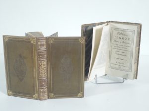 FABLES D'ÉSOPE, mises en Français avec le sens moral en quatre vers, seconde édition, ornée de 193 figures en taille douce PARIS, chez LEPRIEUR 1806. 2 vol, in-12, frontispice, 275 p, 262 p.
