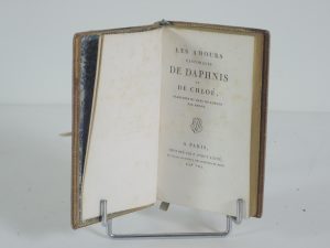 LES AMOURS PASTORALES DE DAPHNIS ET DE CHLOÉ, traduites du grec de LONGUS par AMIOT, PARIS, DIDOT, an viii. In-12, viij ,214 p, plein veau, tranche or, titre sur pièce, dos orné, palettes, fleurons, large roulette sur les plats, filet sur les...