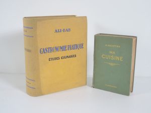 ALI-BAB, GASTRONOMIE PRATIQUE, ÉTUDES CULINAIRES → suivies du traitement de l'obésité des gourmands, PARIS, FLAMMARION 1928. Fort In-4°, reliure pleine toile jaune avec titre bleu.