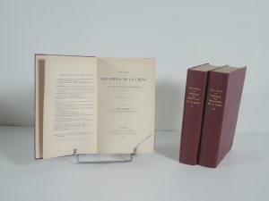 HENRI CORDIER, HISTOIRE DES RELATIONS DE LA CHINE AVEC LES PUISSANCES OCCIDENTALES 1860-1902, PARIS, FÉLIX ALCAN 1901-1902. In-8°, 3 vol 570p, 650p, 598p, catalogue, cartes et plans.